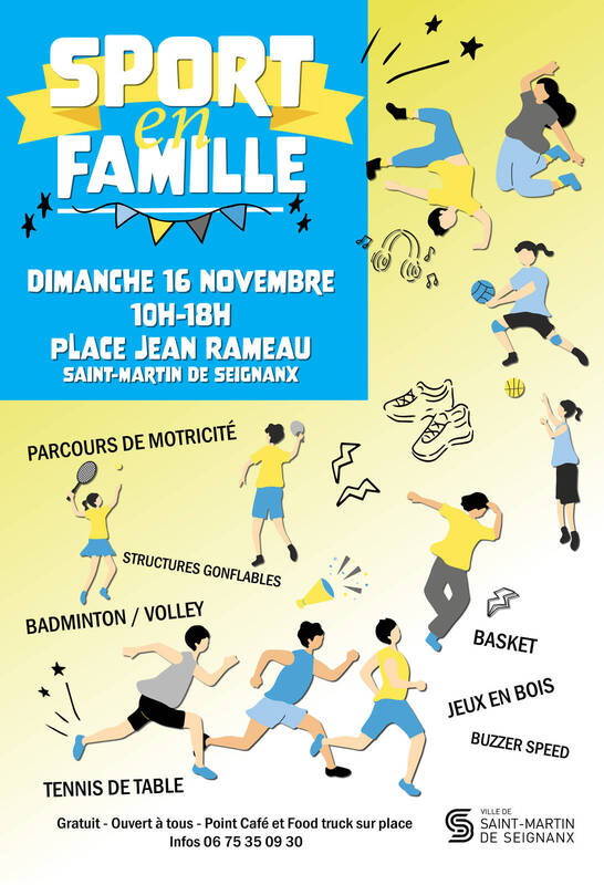 Le Service Municipal des Sports de Saint-Martin-de-Seignanx vous invite à chausser vos baskets pour une journée dédiée au jeu, au sport et au partage en famille ou entre amis ! Rendez-vous à l'Espace Jean Rameau, de 10h à 18h, pour une animation en accès libre et entièrement gratuite.