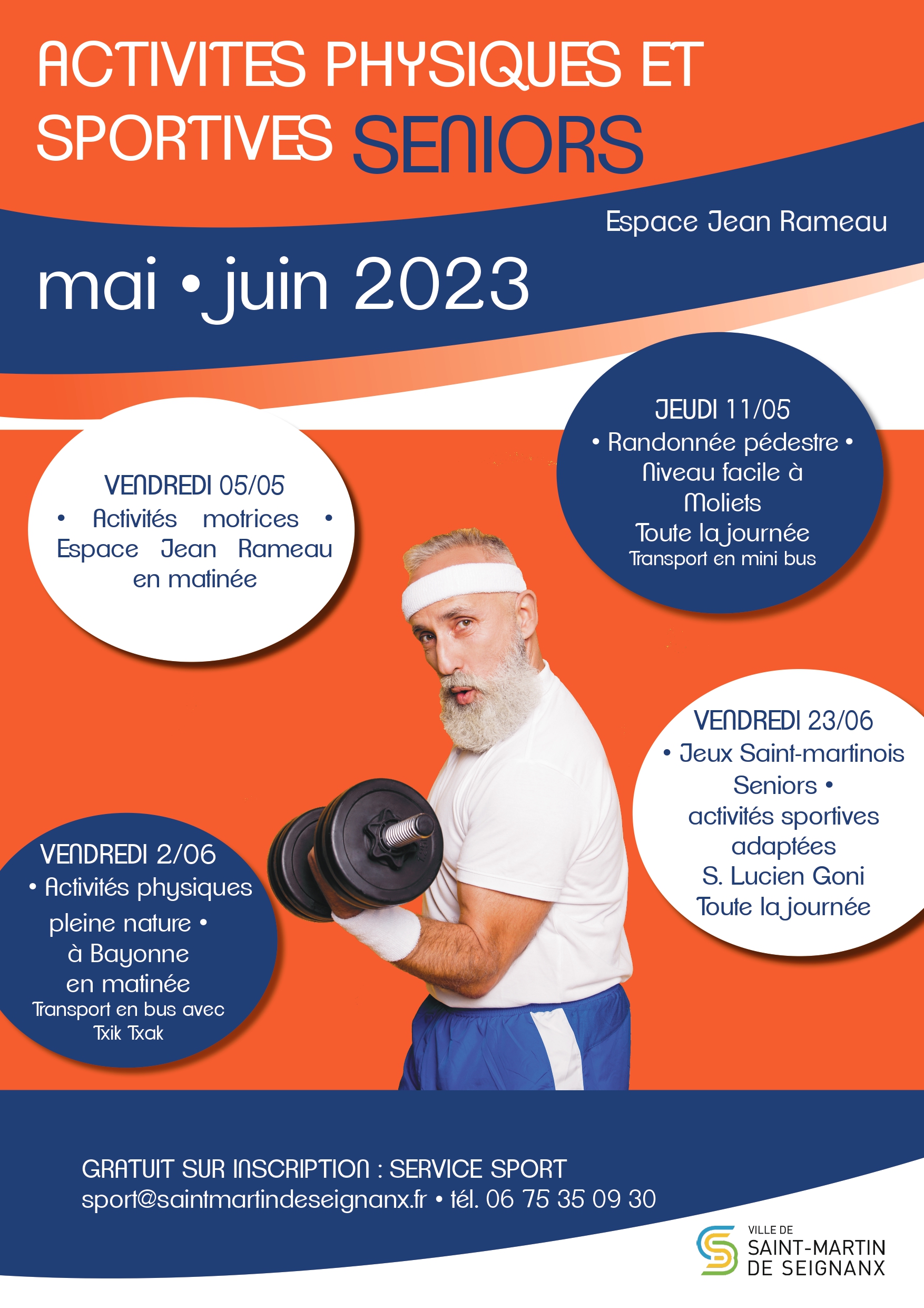 Vous avez plus de 60 ans et souhaitez pratiquer une activité sportive ? Le service des sports est là pour vous conseiller, vous orienter et vous proposer des activités adaptées deux fois par mois. De la rando le 11 mai en passant par les activités physiques et motrices les 5 mai, de pleine nature le 2 juin, vous pourrez aussi vous inscrire aux Jeux Saint-martinois du vendredi 23 juin prochain au stade Goni. Retrouvez le programme ici