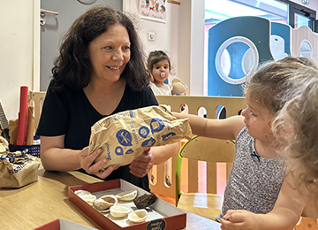 Depuis janvier 2023 j’interviens auprès des tout petits à la crèche deux fois par semaine. Musicienne de formation et musicothérapeute, je créée des spectacles et anime des ateliers artistiques. Avec les tout petits je chante et joue d’un instrument de musique tandis qu’avec les plus grands j’anime des ateliers de découverte de la matière : couture, sculpture, arts plastiques… Ces projets sont co- construits avec les membres de l’équipe de la crèche et nous cherchons toujours à établir un lien avec les familles entre l’enfant et l’adulte. Le participatif c’est très important.