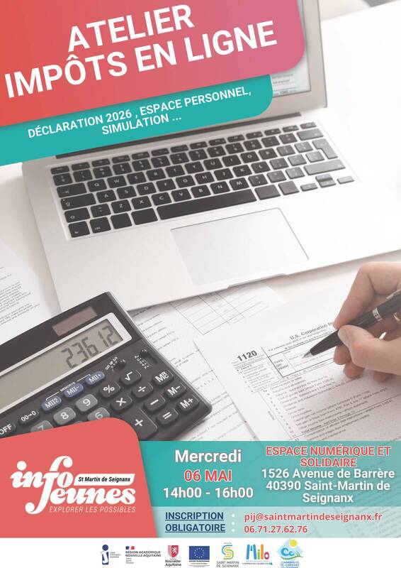 Le service jeunesse vous propose, en collaboration avec l'Espace numérique Solidaire de la Communauté de Communes du Seignanx, un atelier pratique et d'information sur la déclaration d'impôts en ligne. Un moment d'information et d'entraide intergénérationnel qui permet d'aborder sereinement sa déclaration d'impôts !