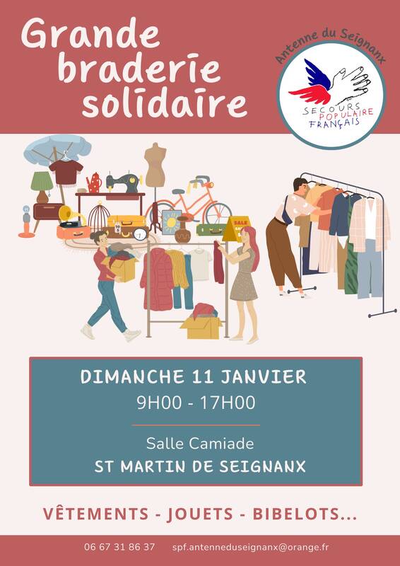 L'antenne du Seignanx du Secours populaire organise une braderie solidaire le dimanche 11 janvier de 9h à 17h salle Camiade à Saint-Martin de Seignanx.