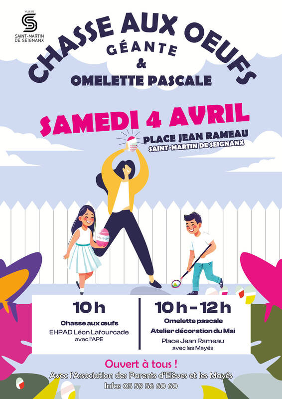 Samedi 4 avril, Saint-Martin-de-Seignanx vibrera au rythme des festivités pascales ! Comme le veut la coutume, la traditionnelle omelette pascale sera au cœur de cette matinée conviviale et familiale.