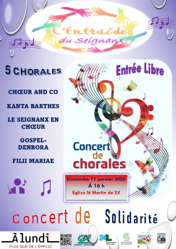 5 chorales se produiront pour le concert solidaire au profit des familles en précarité du Seignanx organisé par l'association Entraide du Seignanx.