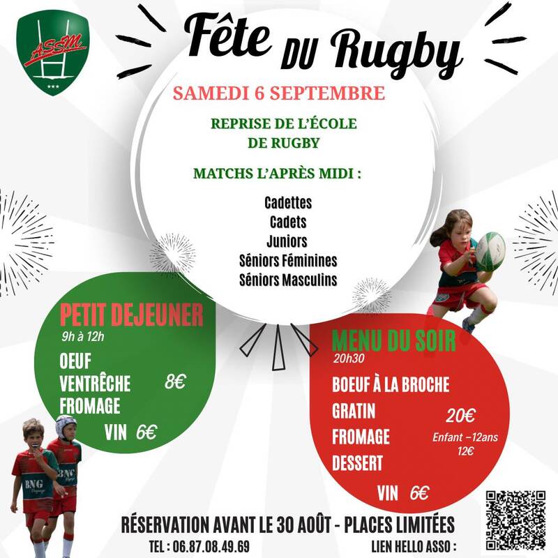 Fête de l'école de rugby toute la journée au Stade Goni avec : petit déjeuner dès 9h, matchs des cadette, cadets, juniors et Seniors H et F l'après-midi et repas à 20h30. Venez nombreux !