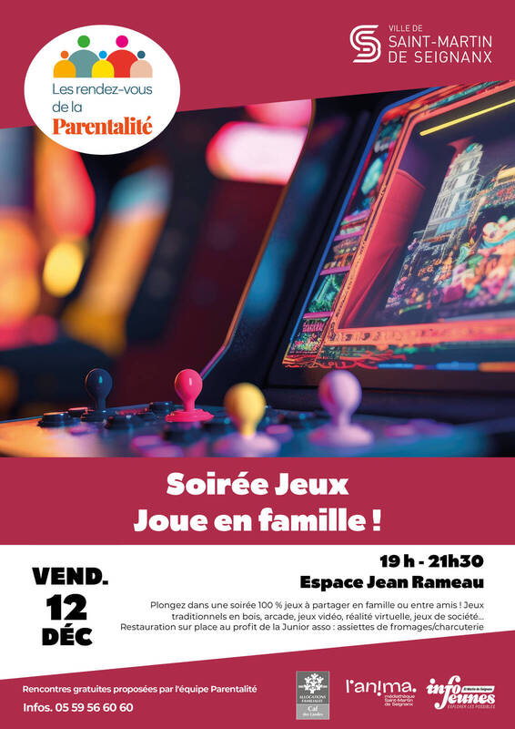 Vendredi 12 décembre de 19h à 21h30 au Service jeunesse, Espace Jean Rameau.